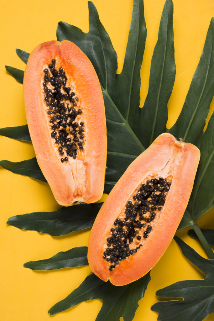 Papaya contains enzymes that lighten skin, while milk provides lactic acid exfoliation.